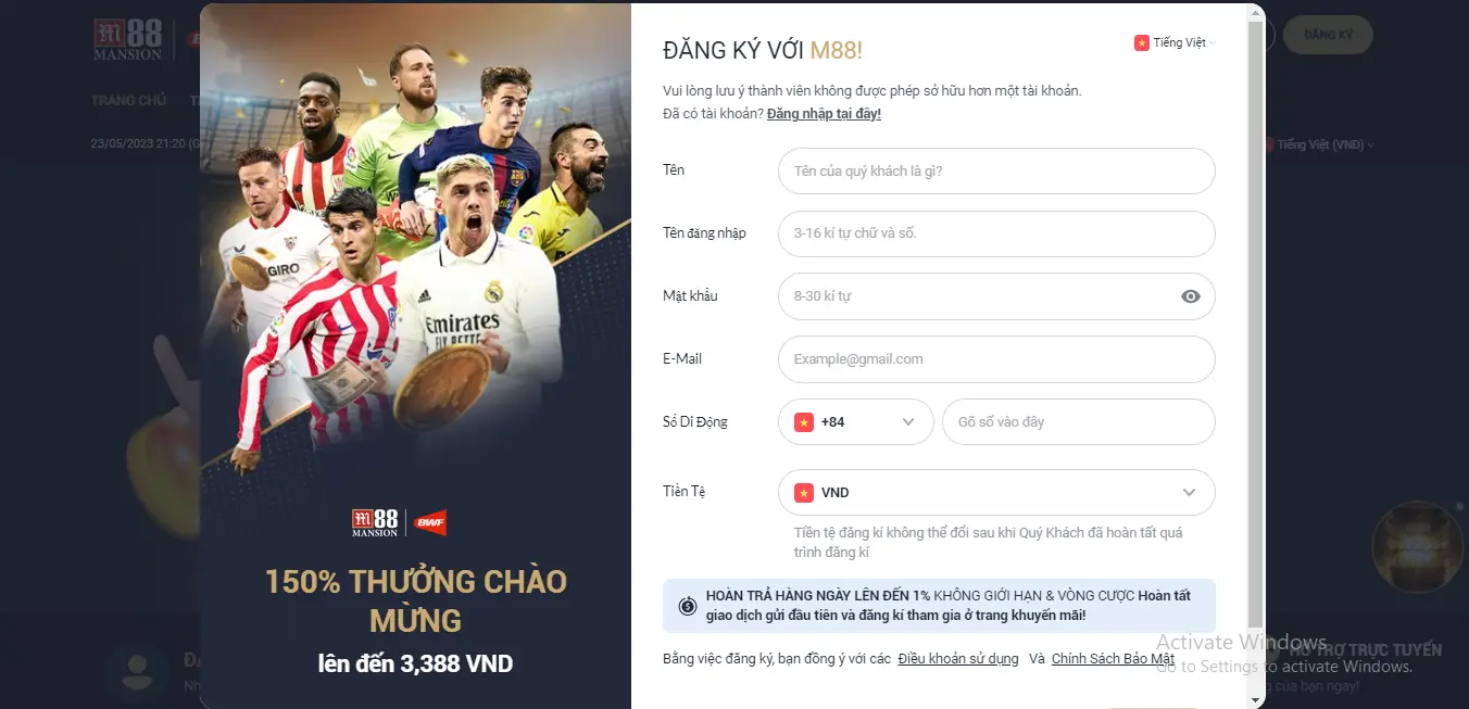 Thông tin phải có khi đăng ký M88 là: