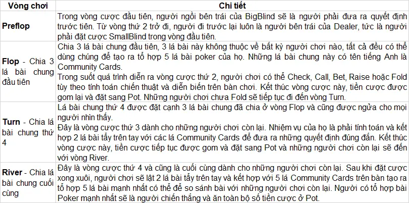 Các Lựa Chọn Trong Mỗi Vòng Cược Của Ván Bài Poker