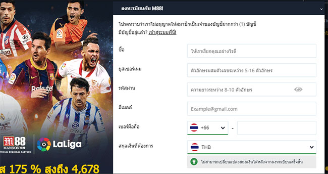• อีเมล: นี่คือที่อยู่ที่ M88 จะส่งการแจ้งเตือนการเดิมพัน ดังนั้นกรุณากรอกอีเมลที่คุณใช้บ่อยที่สุด