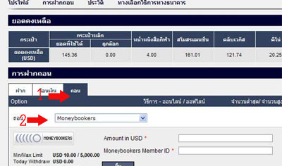 • ระบุจำนวนเงินที่ต้องการถอนในสกุลเงินที่เหมาะสม